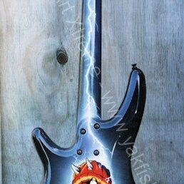 Other items can be painted using 2k automotive finishes. Objects like the bass guitar commissioned in 2004 and snowboard 1998 offering two different scenes with each orientation can be airbrushed to custom requirements.